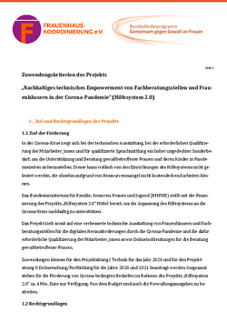 - Zuwendungskriterien zum Projekt „Hilfesystem 2.0“