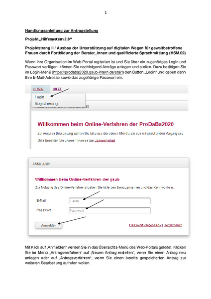 - Handlungsanleitung zur Registrierung für das Online Portal
