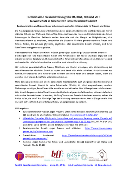 sichern weiterhin Beratung und Schutzunterkünfte für gewaltbetroffene Frauen und Kinder. Sie sind auch weiterhin telefonisch und online erreichbar und bieten Unterstützung.