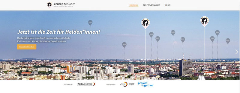 Die Internetseite https://www.sichere-zuflucht.de/ führt Ferienwohnungen, Mietwohnungen und Apartments, die aufgrund der Covid19-Pandemie aktuell leerstehen, mit Frauenhäusern zusammen, die während der Krise erhöhten Platzbedarf verzeichnen. Dabei verlangt die Seite für ihre Vermittlungsleistung keine Gebühren.