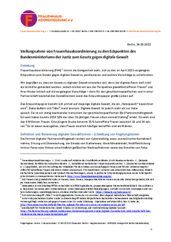 An welchen Stellen wir entsprechenden Nachbesserungsbedarf identifziert haben und welche Ergänzungen wir als Fachorganisation im Frauengewaltschutz insbesondere mit Blick auf digitale Gewalt im Kontext von (Ex-)Partnerschaften als sinnvoll empfehlen möchten, ist der unten stehenden Stellungnahme zu entnehmen.