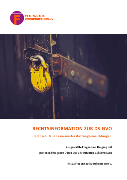 Gegen einen Unkostenbeitrag (FHK-Mitglieder: von 7,50€, sonst 15€) kann die FHK-Rechtsinformation zur DS-GVO als Broschüre über verwaltung@frauenhauskoordinierung.de bestellt werden.