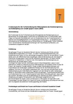 Die Forderungen für die Fortschreibung des Aktionsplanes der Bundesregierung zur Bekämpfung von Gewalt gegen Frauen sind von Mitarbeiterinnen in Frauenhäusern aller Träger und aus allen Bundesländern und von Multiplikatorinnen der Frauenhausarbeit im Rahmen der Werkstattgespräche von Frauenhauskoordinierung e.V. zur Begleitung des Aktionsplanes der Bundesregierung zur Bekämpfung von Gewalt gegen Frauen erarbeitet und in verschiedenen Arbeitszusammenhängen der Frauenhäuser auf Bundes- und Landesebene abgestimmt worden.