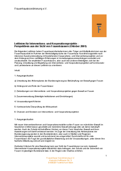 Die folgenden Leitlinien haben Frauenhausmitarbeiterinnen aller Träger und Multiplikatorinnen aus der Frauenhausarbeit im Rahmen der Werkstattgespräche der Frauenhauskoordinierungsstelle erarbeitet. Sie empfehlen Frauenhäusern, aber auch den anderen Beteiligten, sich bei der Planung, Umsetzung und Begleitung von Interventions- und Kooperationsprojekten auf kommunaler und Landesebene an diesen Leitlinien zu orientieren.