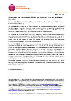 Mit großer Sorge beobachtet FHK wie die Türkei nun ausdrücklich Abstand vom Schutz von Frauen und Mädchen vor Gewalt nimmt und damit den Forderungen von Frauenrechtsinitiativen eine Absage erteilt.