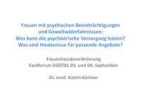 Frauen mit psychischen Beeinträchtigungen und Gewaltwiderfahrnissen: Was kann die psychiatrische Versorgung leisten? Was sind Hindernisse für passende Angebote? Frauenhauskoordinierung Fachforum…