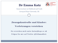 Dr Emma Katz Senior Lecturer in Childhood and Youth Liverpool Hope University, UK Z w a n g s k o n t r ol l e u n d K i n d e r : Verletzungen verstehen Sie erreichen mich unter katze@hope.ac.uk…